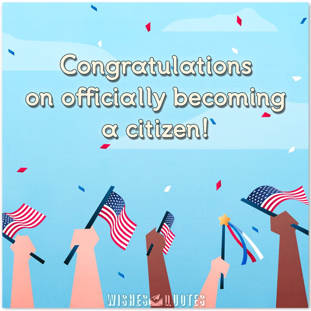 - Congratulations on officially becoming a citizen! This is a momentous occasion that marks the beginning of an extraordinary journey. May your path be illuminated with countless opportunities, and may you seize them with courage and determination. As you navigate through the complexities of citizenship, remember to always embrace diversity, foster unity, and leave a positive imprint wherever you go. Wishing you a future filled with prosperity, joy, and endless possibilities.